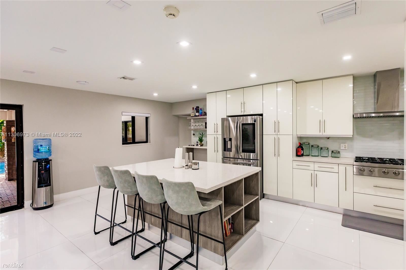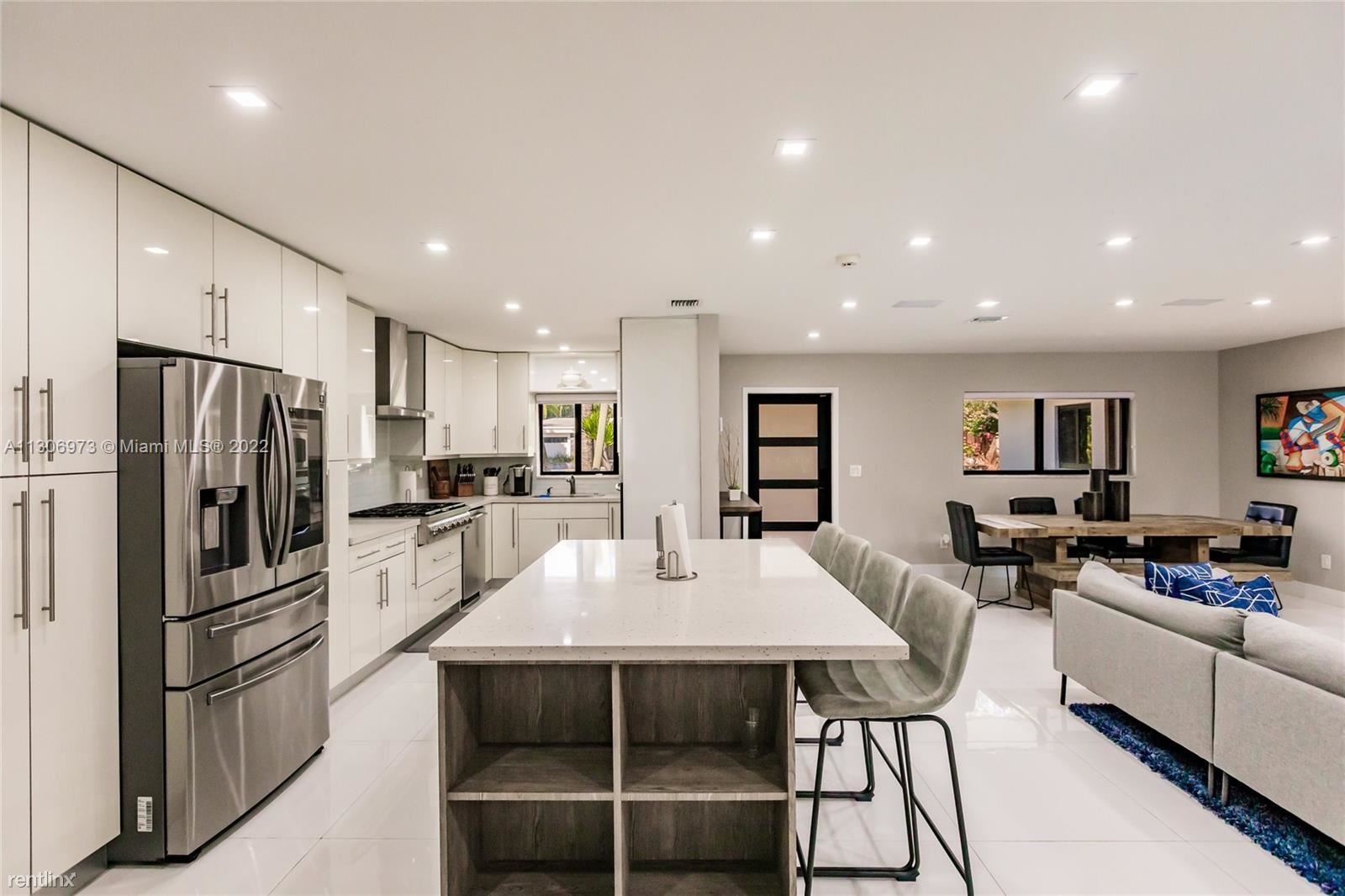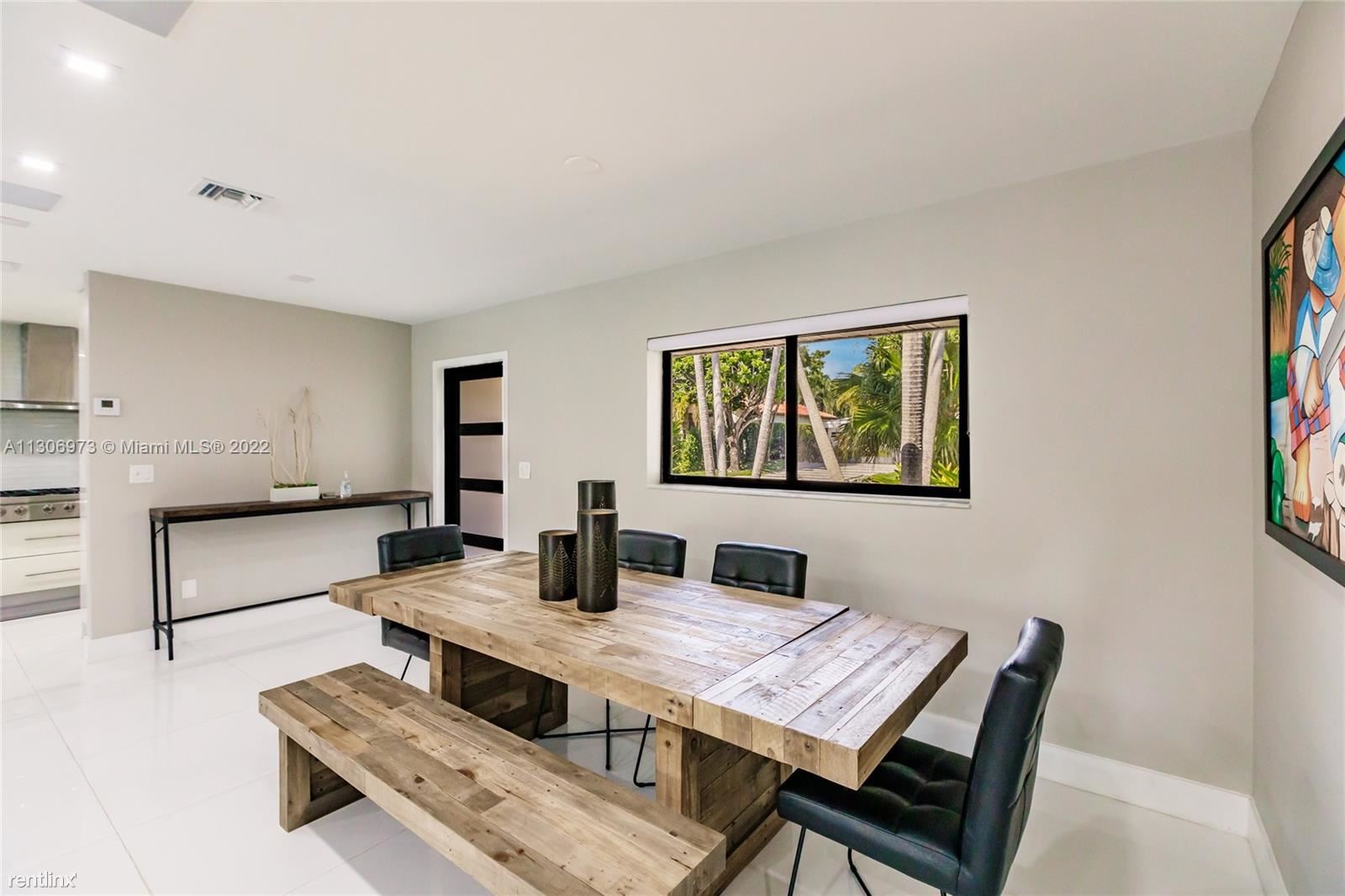 One-of-a-kind home in Miami Shores. 4 bedrooms 2 baths with a perfect backyard to entertain with a pool and a basketball hoop. Brand new kitchen with stainless steel appliances, gas stove, and a beautiful white quartz island with four bar seats. Wide-open floor plan with new large porcelain tile throughout. Brand new fence, new hurricane impact windows, just recently painted. Large driveway for multiple cars and two separate entrances with gated parking. 4th Bedroom is currently being used as an office, the owner is willing to furnish into a 4th bedroom if requested. All showings will be coordinated through LA. No Pets Allowed (RLNE8091279)