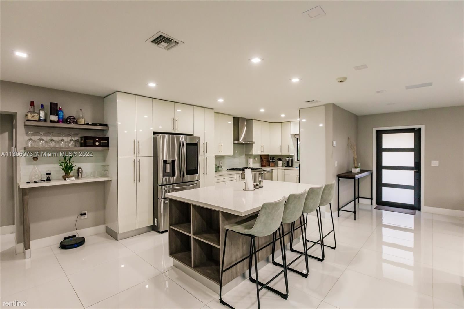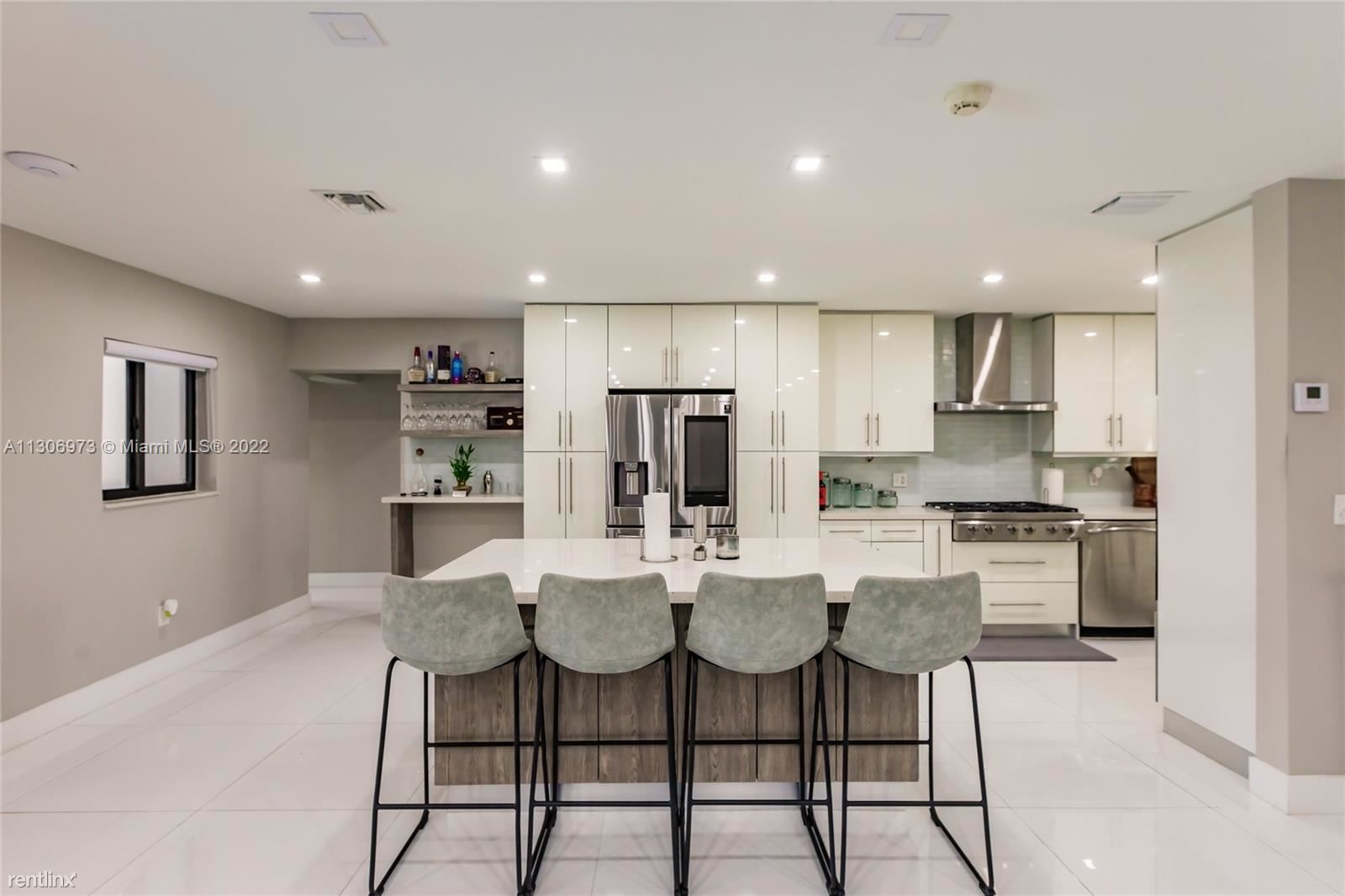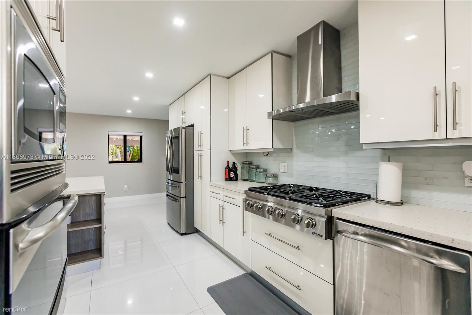 One-of-a-kind home in Miami Shores. 4 bedrooms 2 baths with a perfect backyard to entertain with a pool and a basketball hoop. Brand new kitchen with stainless steel appliances, gas stove, and a beautiful white quartz island with four bar seats. Wide-open floor plan with new large porcelain tile throughout. Brand new fence, new hurricane impact windows, just recently painted. Large driveway for multiple cars and two separate entrances with gated parking. 4th Bedroom is currently being used as an office, the owner is willing to furnish into a 4th bedroom if requested. All showings will be coordinated through LA. No Pets Allowed (RLNE8091279)