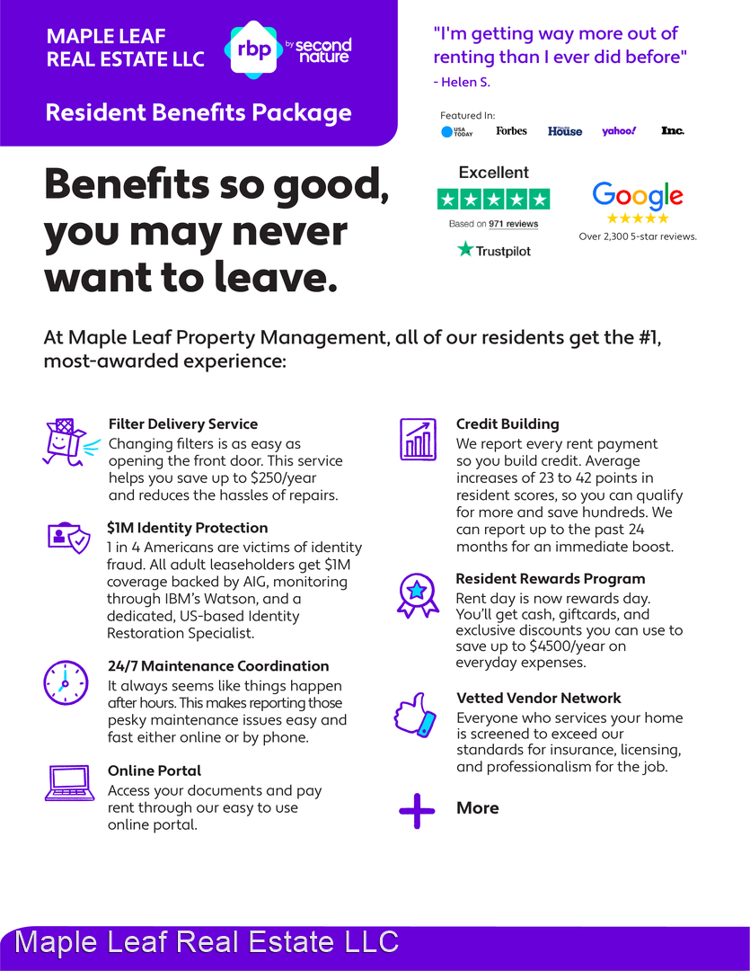 View our Rental Criteria and Application Disclosure at http://mapleleafmgt.com